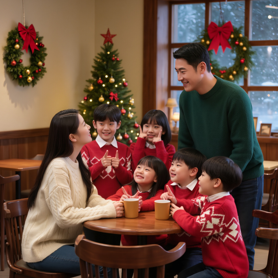 Quatre voix, parfaitement synchronisées, déboulèrent dans la salle. Trois enfants parlaient en signant. Le quatrième, silencieux, signait avec la même énergie.