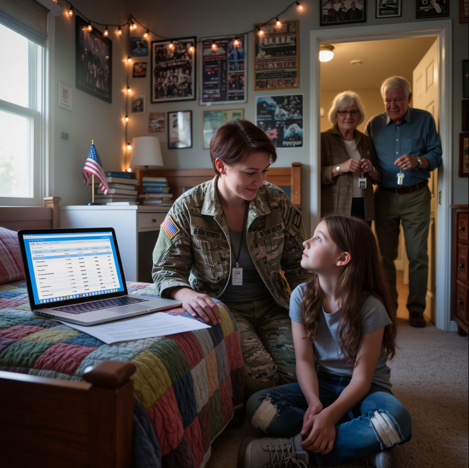 Les ordres sont finalement arrivés dans une enveloppe kraft. Neuf mois. La carte dans la salle de briefing désignait un « élément chirurgical avancé ». Mon estomac n’entendait que des bruits d’explosion, de poussière et d’odeur de métal. Emma avait treize ans, toute en assurance et en opinions, essayant d’afficher le courage qu’on arbore lors des assemblées scolaires. J’ai expliqué le déploiement avec une gaieté affectée qui nous a tous deux offensés, puis j’ai fait deux heures de route jusqu’à chez mes parents et leur ai demandé de l’aide que je n’avais pas envie de solliciter.