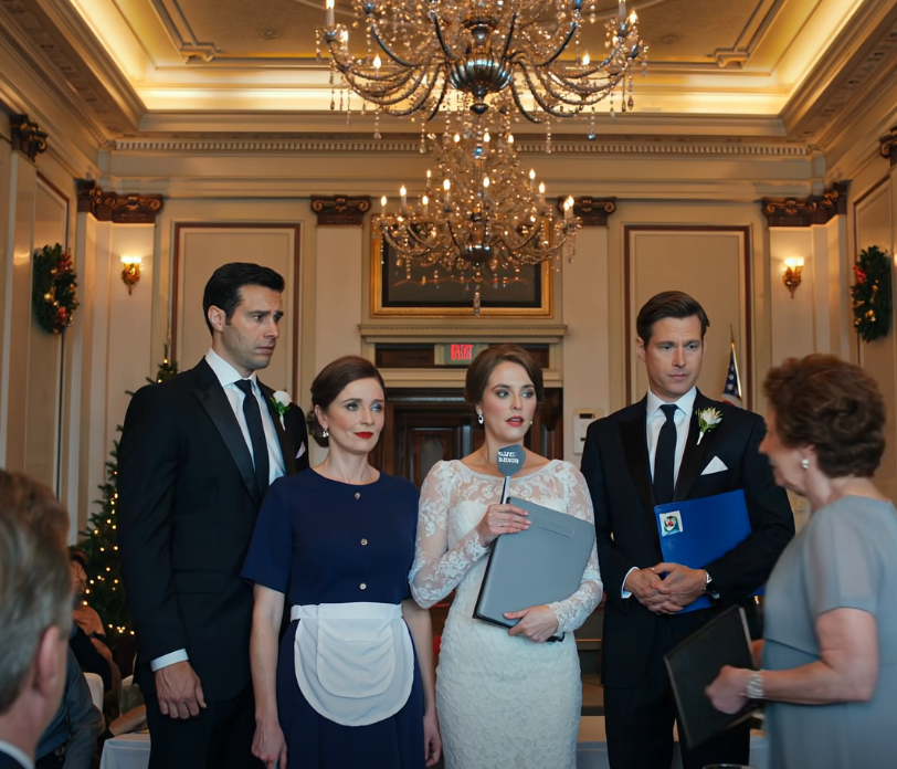 De l’autre côté de la salle de bal, sous des lustres qui ressemblaient à des cascades de cristal figées, ma fille se tenait aux côtés de son nouvel époux.