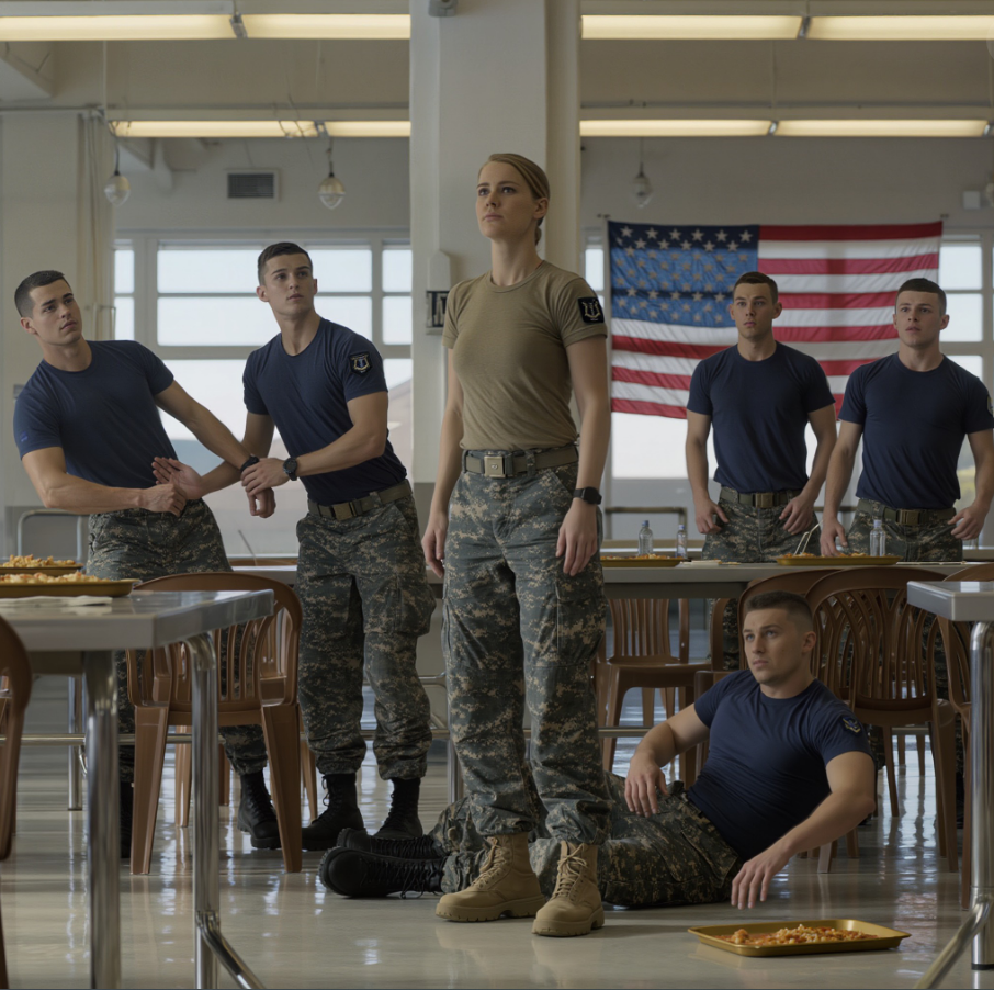 Cinq recrues l’ont coincée dans le réfectoire — trente secondes plus tard, ils ont appris qu’elle était une Navy SEAL
