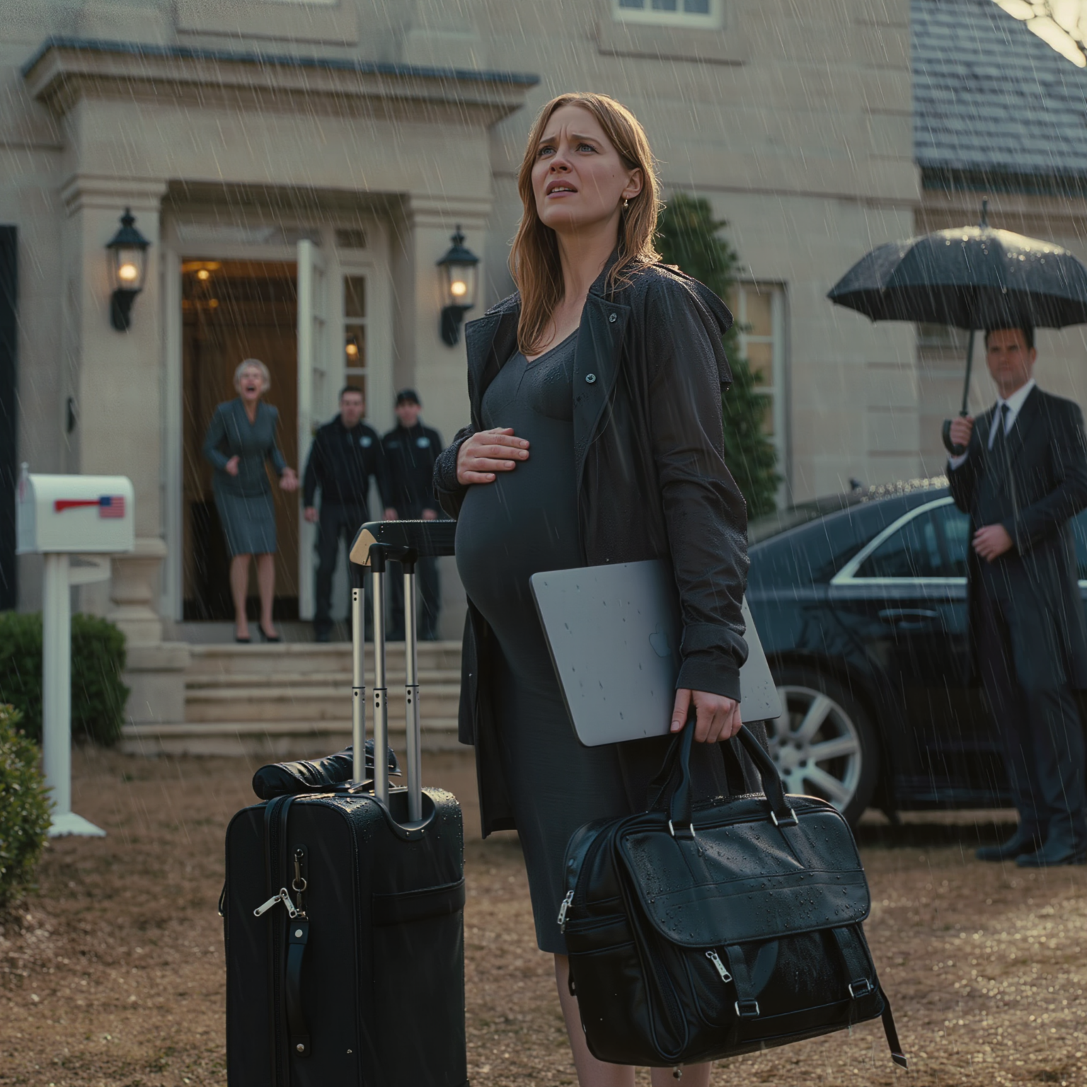 La pluie trempait ma fine robe de grossesse tandis que mes vêtements volaient autour de moi pour atterrir sur la pelouse boueuse. Je pressai une main contre mon ventre de huit mois, m’appuyant sur la rambarde du porche.