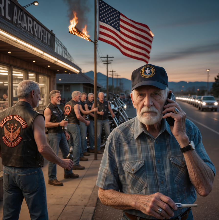 Ils se faisaient appeler le Blood Phoenix MC, le gang de motards le plus redouté du Montana. Pendant des mois, ils avaient terrorisé la ville de Thunder Ridge, se croyant maîtres des rues – jusqu’à leur rencontre avec Frank Anderson. À leurs yeux, il n’était qu’un simple commerçant de 72 ans, une cible facile. Mais lorsqu’ils brûlèrent le drapeau américain devant sa quincaillerie, ils commirent l’erreur de leur vie. Ce que le chef impitoyable du gang, Jake Marshall, ignorait, c’est que ce vieil homme discret était un vétéran du Vietnam décoré, sur le point de passer un coup de fil qui allait mobiliser plus de 200 anciens combattants qui lui devaient la vie. En 24 heures, Thunder Ridge allait devenir le théâtre d’une extraordinaire histoire de rédemption, où le pire acte d’irrespect d’un gang allait engendrer sa plus profonde transformation.