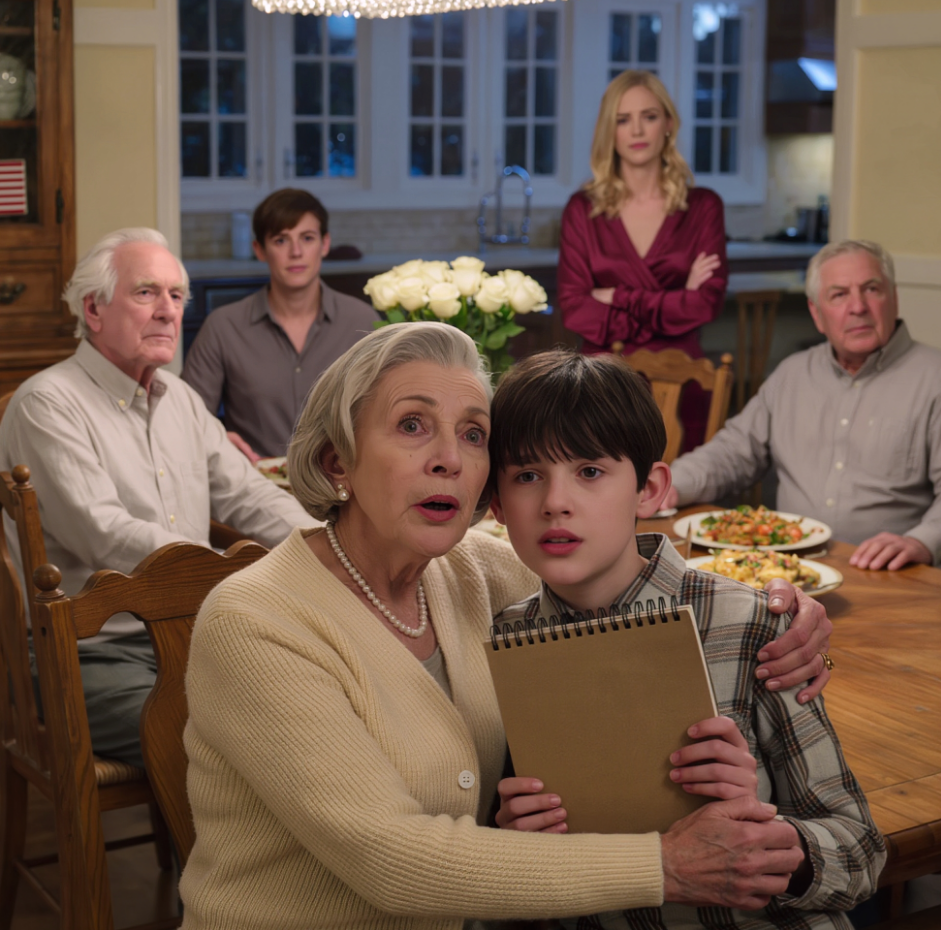 Mon fils Colin est arrivé juste derrière elle, fatigué, absorbé par son travail. Il m’a embrassée distraitement. Mais c’est mon petit-fils Tommy qui a attiré mon attention. Du haut de ses douze ans, il semblait nerveux, presque inquiet. Il serrait son carnet de dessin contre lui comme une bouée de sauvetage.