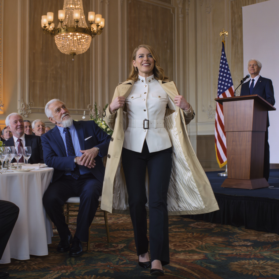 Les mots glissèrent dans la pièce et me frappèrent avec la monotonie d’une phrase que j’avais entendue cent fois. Mais ce soir, ils sonnaient différemment, comme le prélude à quelque chose que j’étais la seule à pressentir. La voix du maître de cérémonie résonna dans les haut-parleurs, douce et solennelle, remerciant les invités pour leur service et leur présence. Je fis un pas en avant, le bruit de mes bottes sur le marbre déchirant le murmure poli des conversations. Mon cœur était stable, presque calme, car j’avais répété ce moment dans ma tête tant de fois.