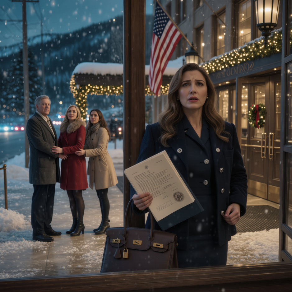 I sat by a private fire in the presidential suite, watching the snow bury the entrance of a five-star hotel. Three figures stood outside shivering, pounding on the glass like strangers, unaware their key cards had died the second I paid the bill and ordered the manager to never let them in.