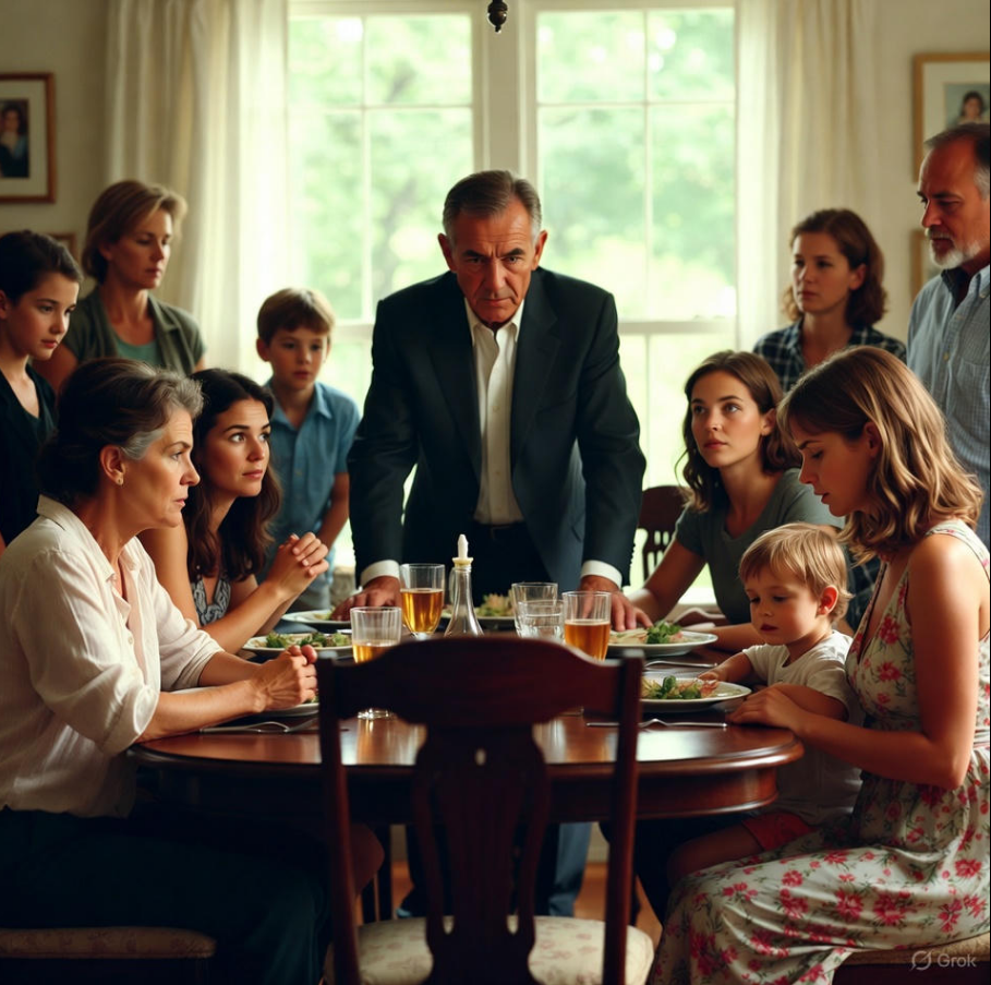 Le lustre au-dessus de la table projetait des ombres étranges sur une vingtaine de visages. Certains affichaient une satisfaction à peine dissimulée, d’autres une joie assumée. Tous attendaient la suite. Mon père s’est levé, les mains posées sur la grande table en acajou, comme s’il s’apprêtait à prononcer un discours solennel.