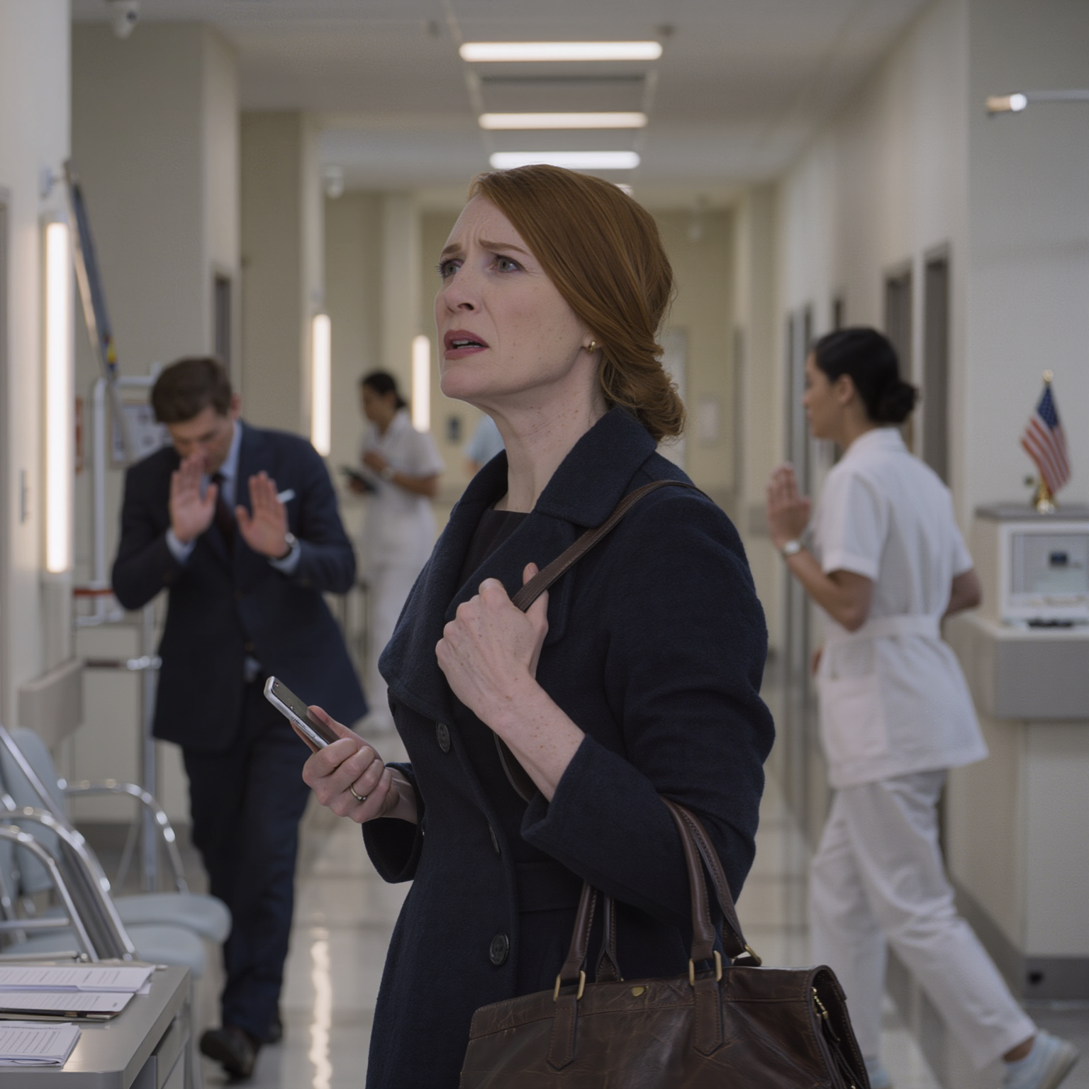 J’ai serré la bandoulière de mon sac à main en cuir et je me suis dirigée vers le poste des infirmières.