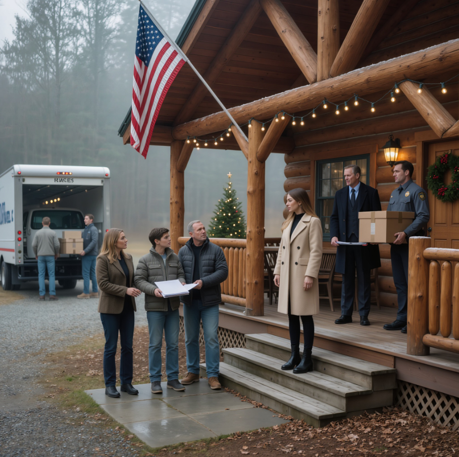 Ils ont commencé à diriger les déménageurs comme s’ils étaient déjà chez eux, me disant de préparer mes affaires pour la fin de la journée. C’est alors qu’ils ont levé les yeux et ont vu l’homme en costume qui se tenait sur le porche, accompagné d’un adjoint du shérif tenant un dossier officiel, attendant calmement.
