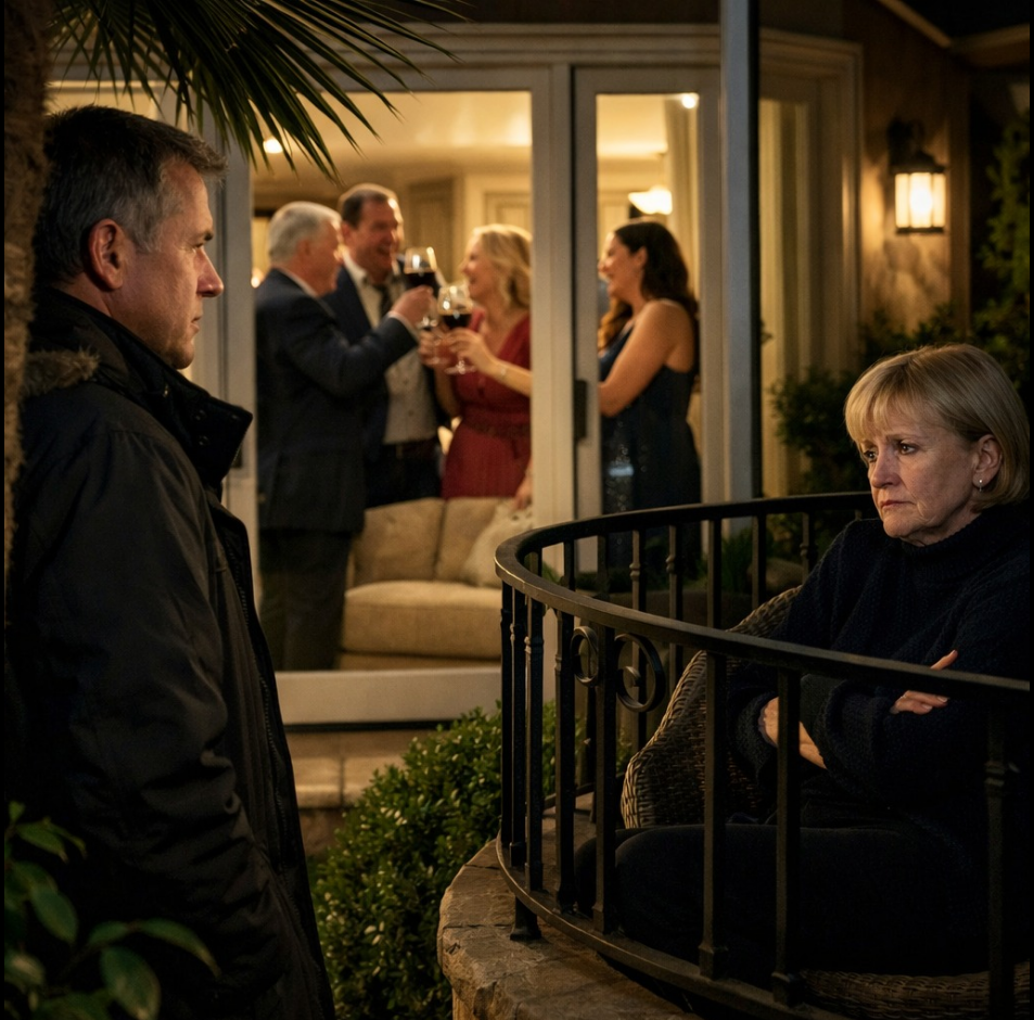 Elle était assise seule sur le balcon, séparée du reste du groupe par une porte vitrée. Des larmes coulaient sur son visage, illuminées par les guirlandes de Noël. Personne ne la regardait.
