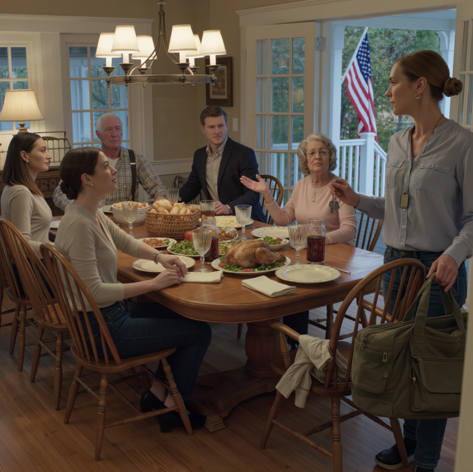 Je suis le capitaine Ray Donovan, du Corps des ingénieurs de l’armée américaine. Moins de deux semaines après mon retour d’Afghanistan, j’ai réalisé que j’étais plus à ma place en zone de guerre que chez moi. Ce dimanche soir devait être simple : un dîner en famille, du poulet rôti, de la purée, la normalité selon ma mère. Je suis rentré plus tôt, encore à moitié en uniforme, car maman m’avait envoyé un texto : « Dîner en famille ce soir. Tout le monde vient. » Je pensais que « tout le monde » désignait mes parents et ma sœur. J’ignorais que cela incluait ma sœur, son mari et leurs egos de promoteurs immobiliers.