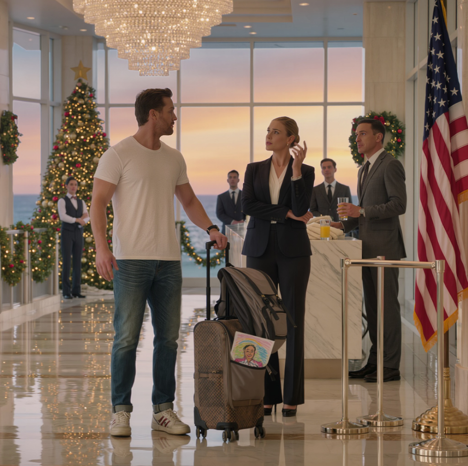 Noah Carter entra dans le hall du Silver Harbor Resort avec une petite valise usée et une fatigue profonde dans les épaules. Il portait un simple t-shirt blanc, un jean banal et des baskets légèrement élimées. Rien qui attirait l’attention dans ce palace en bord de mer où le marbre brillait sous des lustres hors de prix.